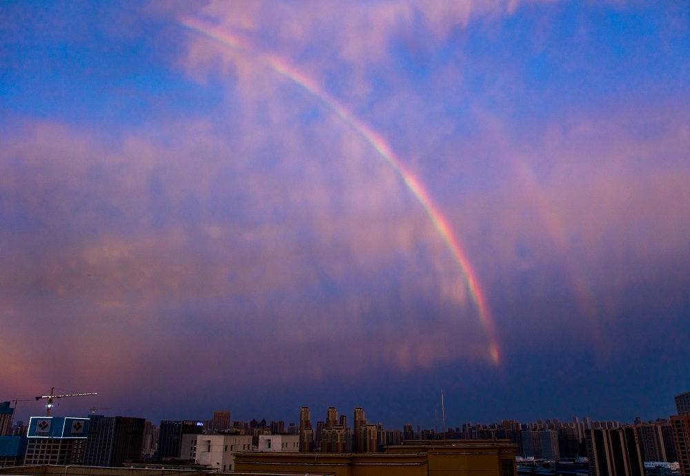 5时33分,西边天空出现双彩虹。长江日报城市摄影队 韩昶光 摄
