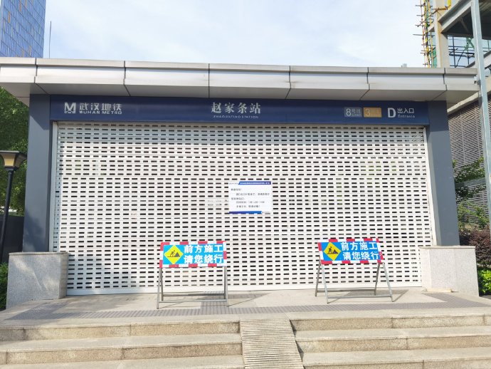 请绕行!地铁赵家条站D出入口暂时关闭 2021-07-13 09:38 @武汉地铁运营 0 武汉轨道交通3、8号线换乘站赵家条站D出入口因外围防护安装需暂时关闭,施工时间预计为7月12日至7月16日。在此期间,为了您的安全,请您绕行其它出入口,D出入口的具体开通时间请以实际公布为准。 (来源:@武汉地铁运营) 【编辑:贺方程】
