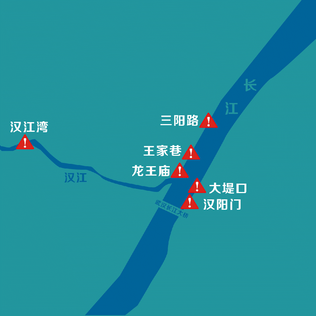 “汉阳门水域因有长江大桥桥墩和靠近长江南岸的江中礁石,江水在此形成洄流,很多人以为就在岸边游一下,不会有事,但这里非常危险,很可能就离岸边几米,但就是游不回来;大堤口水域很长一段斜坡都长了青苔,玩水时很容易不小心滑下去;每年长江涨水时,龙王庙水域汉江江水回流形成漩涡,进去了就不容易出来;汉江湾看起来平缓,但底下水流湍急。”张建民说。