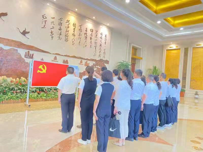 在展览大厅,全体党员肃立于庄严的中国共产党入党誓词前,面对党旗,举起右手、重温入党誓词,铮铮誓言、铿锵有力,表达着对党的无比热爱和无限忠诚,抒发了党员干部的崇高信仰和坚定信念。
