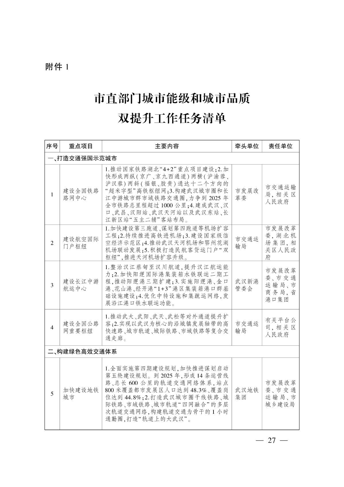 附件:1.市直部门城市能级和城市品质双提升工作任务清单
