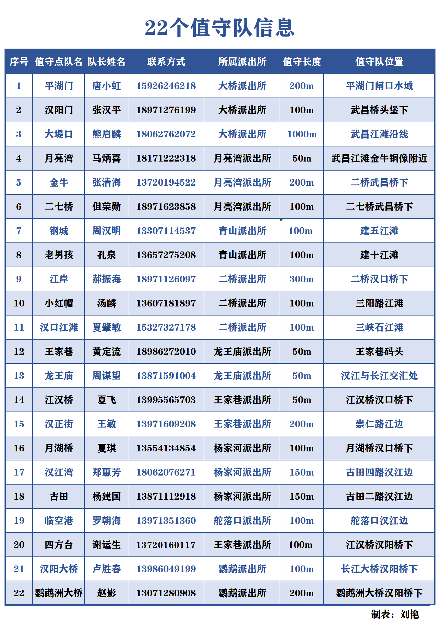 长江日报7月19日讯 夏季是溺水事故高发期,守护人民群众安全,从6月1日到10月初,600多名长江救援志愿队队员在武汉两江四岸22个值守点进行值守。7月19日,长江日报记者联系长江救援志愿队,制作出了一份武汉“防溺水地图”,图中梳理了武汉22个值守点的具体位置、负责人联系方式,方便群众紧急求助。