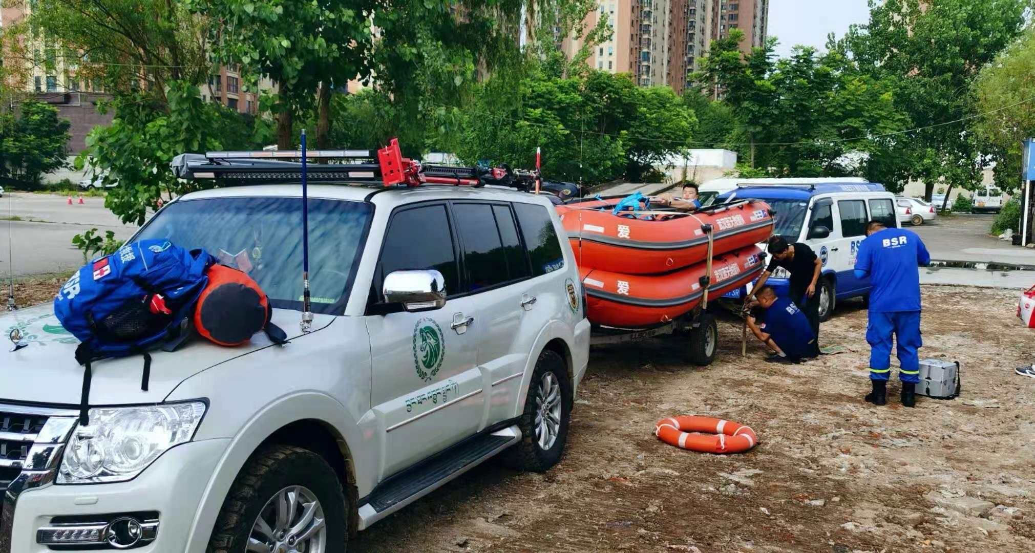 21日上午8:00,武汉蓝天救援队队长张泉率领陈越峰、王翔、靳祥龙、寇尔谦、姚启林、王诚、钱鑫、喻崑、邵琪清3车10人,携冲锋舟2艘,2台30P艇动力以及个人救援装备,前往河南荥阳参加救灾。