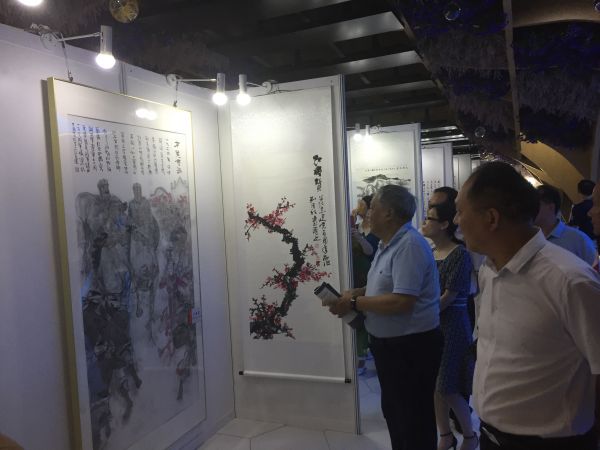 此次画展由中法武汉生态示范城管委会、武汉市蔡甸区委宣传部和武汉知音文化研究会共同主办,展出武汉地区名人名家的100余幅书画作品,这些名人名家多为老党员、老干部、老艺术家。