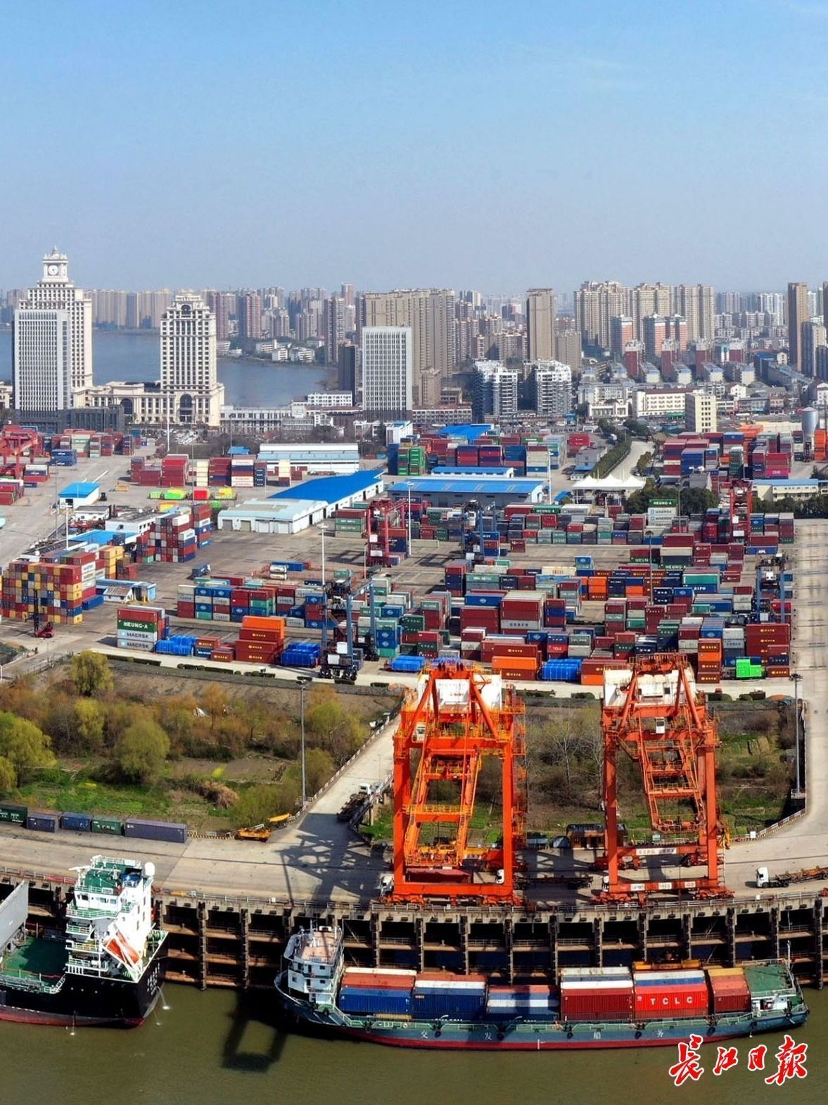 阳逻港一期码头一片繁忙。长江日报记者刘斌 摄