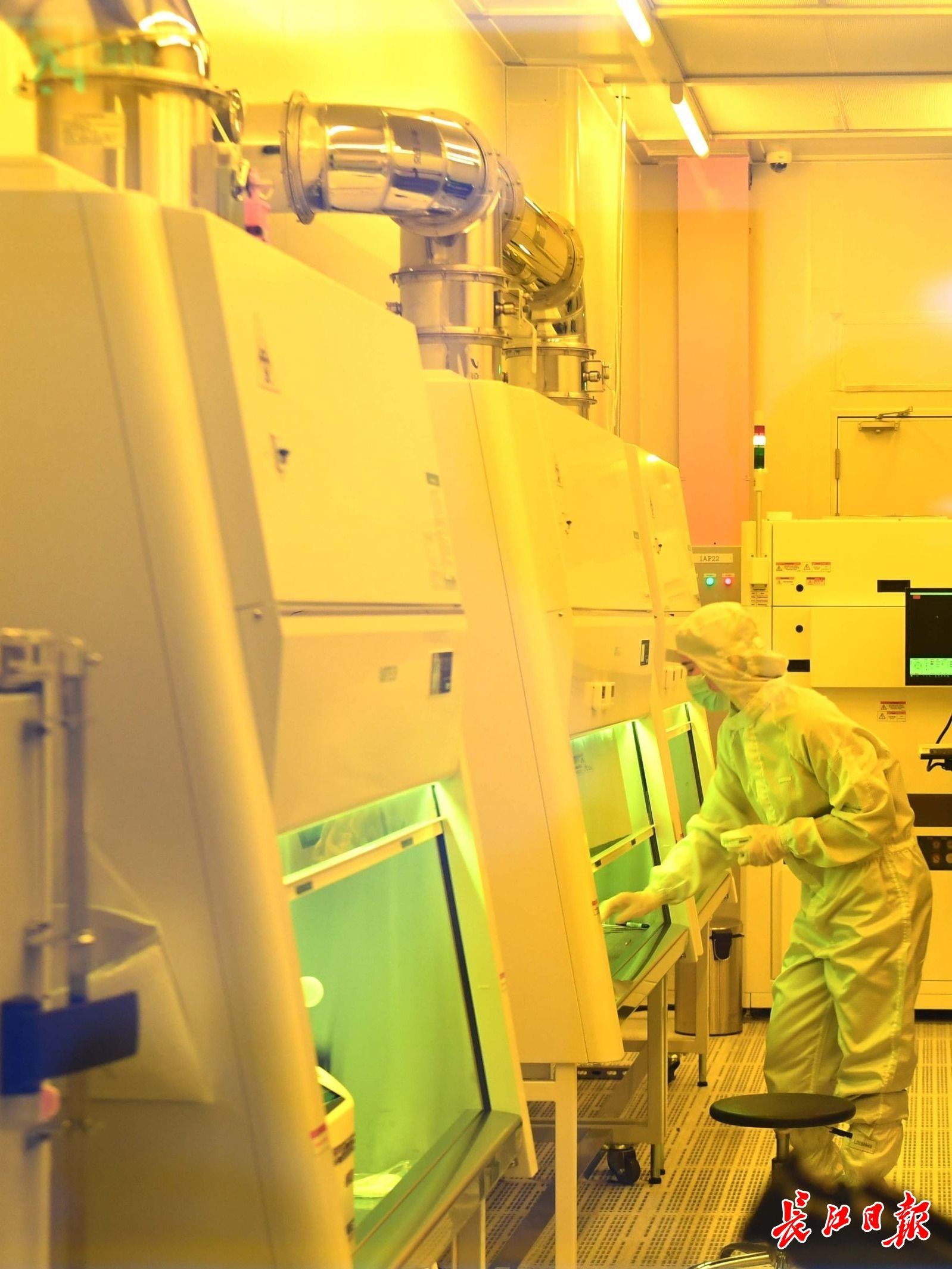武汉光谷量子技术有限公司的光刻间里,工作人员在黄光环境下安全生产。长江日报记者高勇 摄