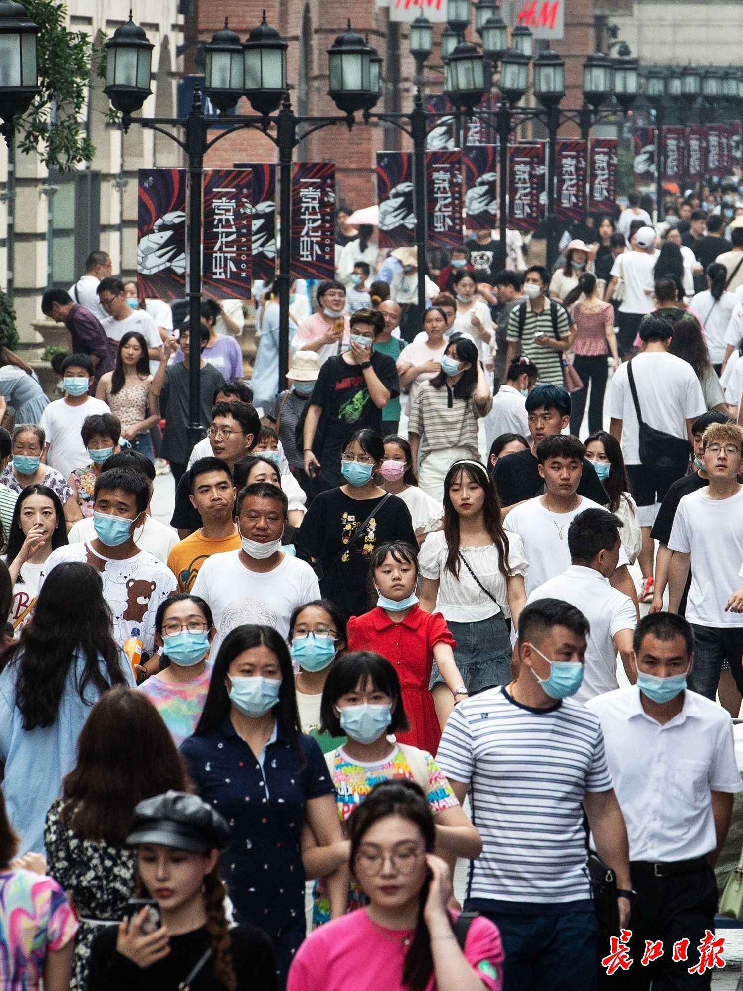 楚河汉街人流如织,一派热闹繁华的景象。 长江日报记者任勇 摄