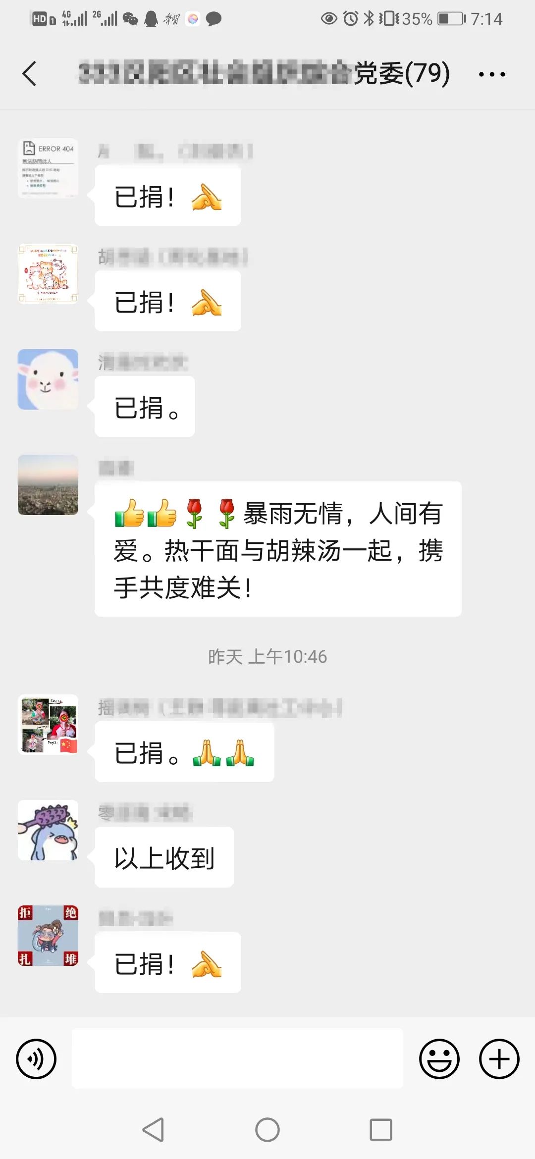 大家都在微信群里表爱心