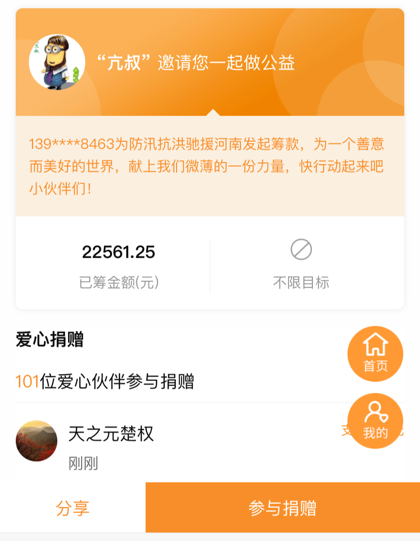 发起了募捐接龙链接