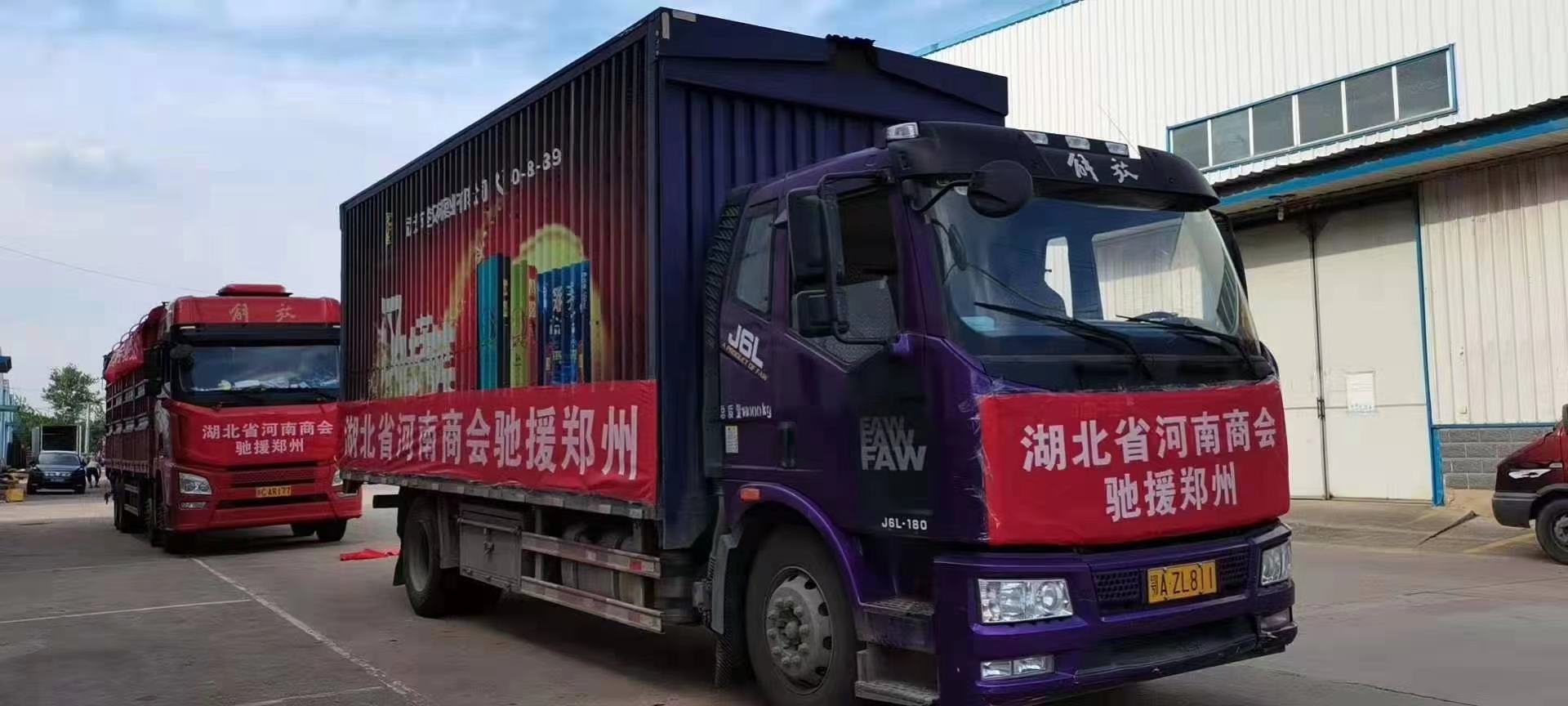 长江日报7月23日讯(记者杨枫) 灾情牵动人心,救援迫在眉睫。得知河南洪水灾情,武汉理享佳青少年公益服务中心联合湖北省河南商会、周黑鸭国际控股有限公司、汉川市人民医院、武汉孝昌商会、武汉高华特种车辆制造有限公司,向河南捐献约1.5万件饮用水,一批食品、母婴用品、消毒液,床垫等物资,合计400余吨,共装载了14台货车。7月22日,满载爱心的物资从武汉到郑州千里驰援,7月23日到达河南。