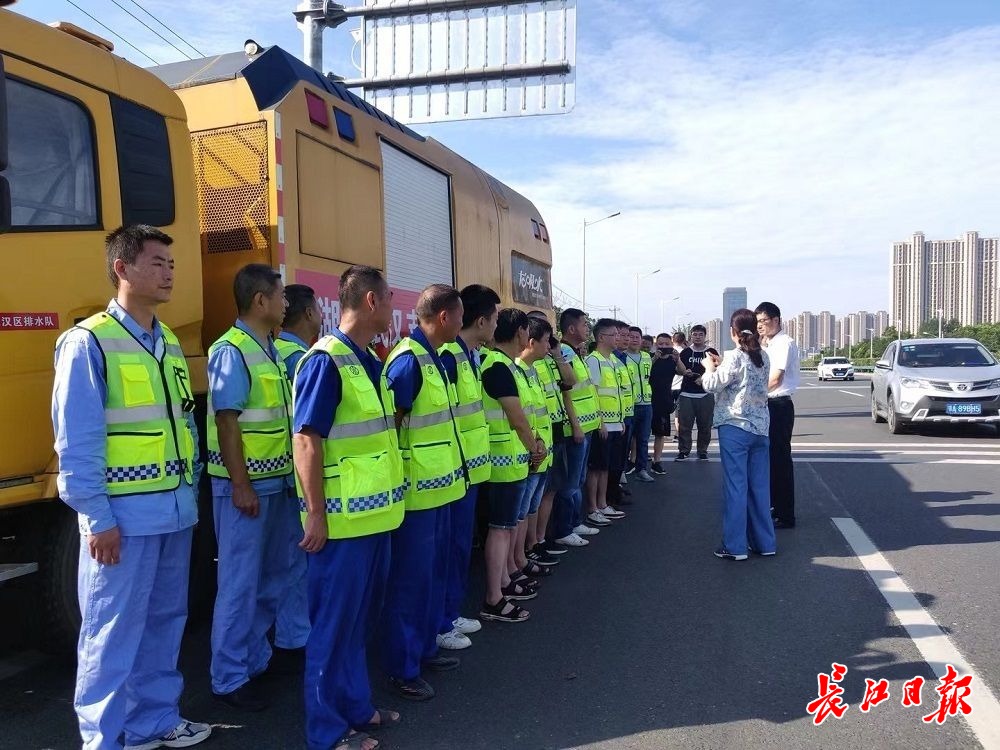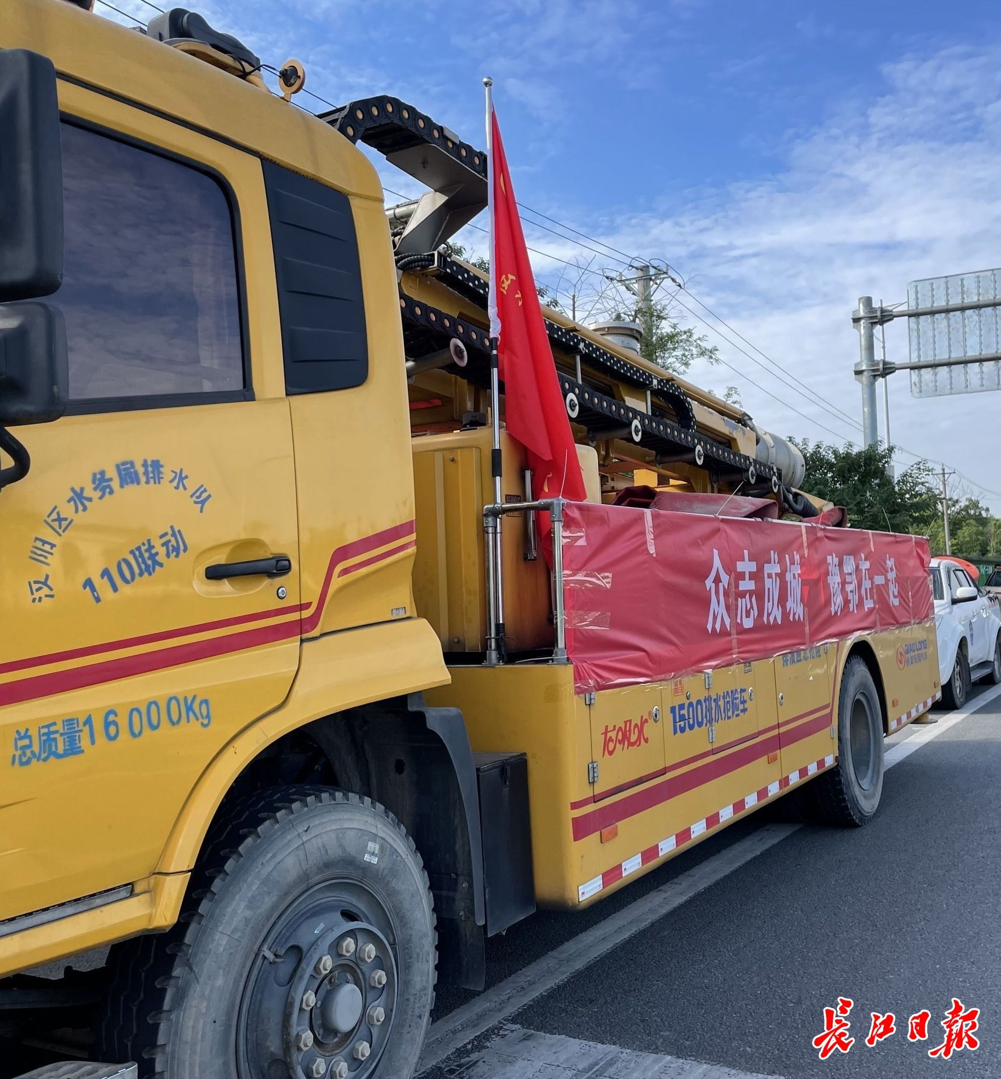 长江日报记者在现场看见,14台车辆及设备在路边一字排开,其中江岸、江汉、汉阳、青山、洪山区水务部门的5台“龙吸水”泵车尤为醒目,40名水务专业技术人员正在对设备进行最后检查,不少路过的市民车辆纷纷摇下车窗,挥手点赞。