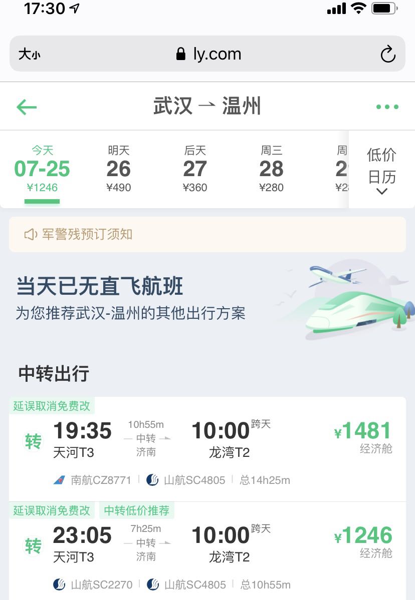 记者下午通过第三方售票平台查询武汉到华东上海、温州、宁波、杭州地区部分城市的机票,发现25日均没有直达航班。26日,武汉直飞上海的航班多数为全价销售,很多航班票价2000多元。记者通过12306查询,26日武汉到上海方向的车次,部分车次车票已售罄。(长江日报记者王谦 实习生张楠楠 通讯员李沙)
