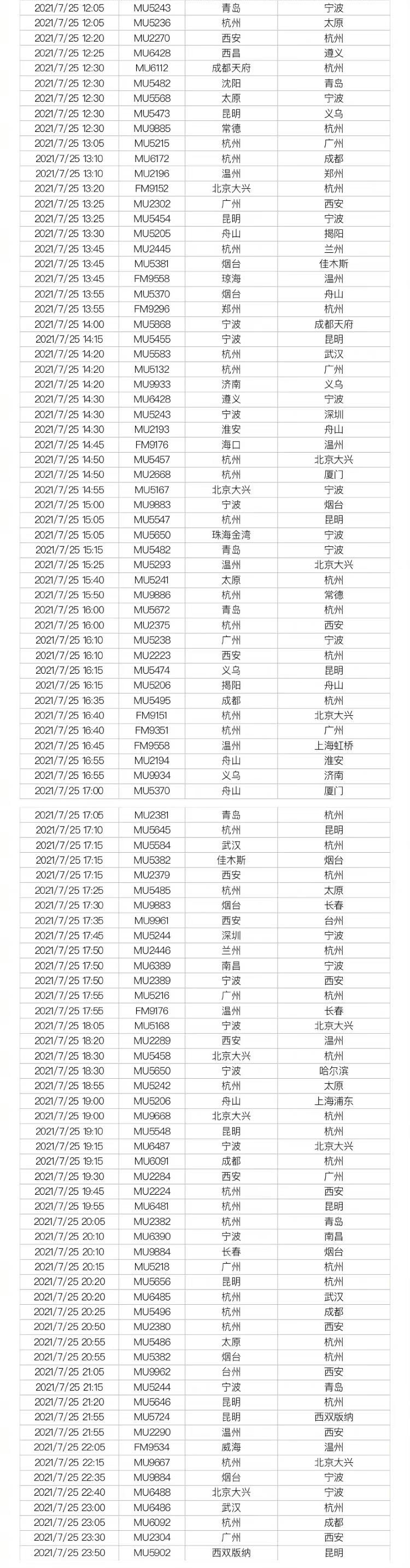 天河机场官方微博显示,7月25日全天进港航班271班,出港航班265班。记者发现,25日的计划航班量比上一日的计划量少了约80班。中国东方航空发布消息,受台风“烟花”影响,浙江、上海等地出现大范围持续性降雨。为确保航班安全运行,东航取消7月24日至7月25日上海、宁波等地部分进出港航班。后续东航将根据台风发展趋势,适时调整航班运行。