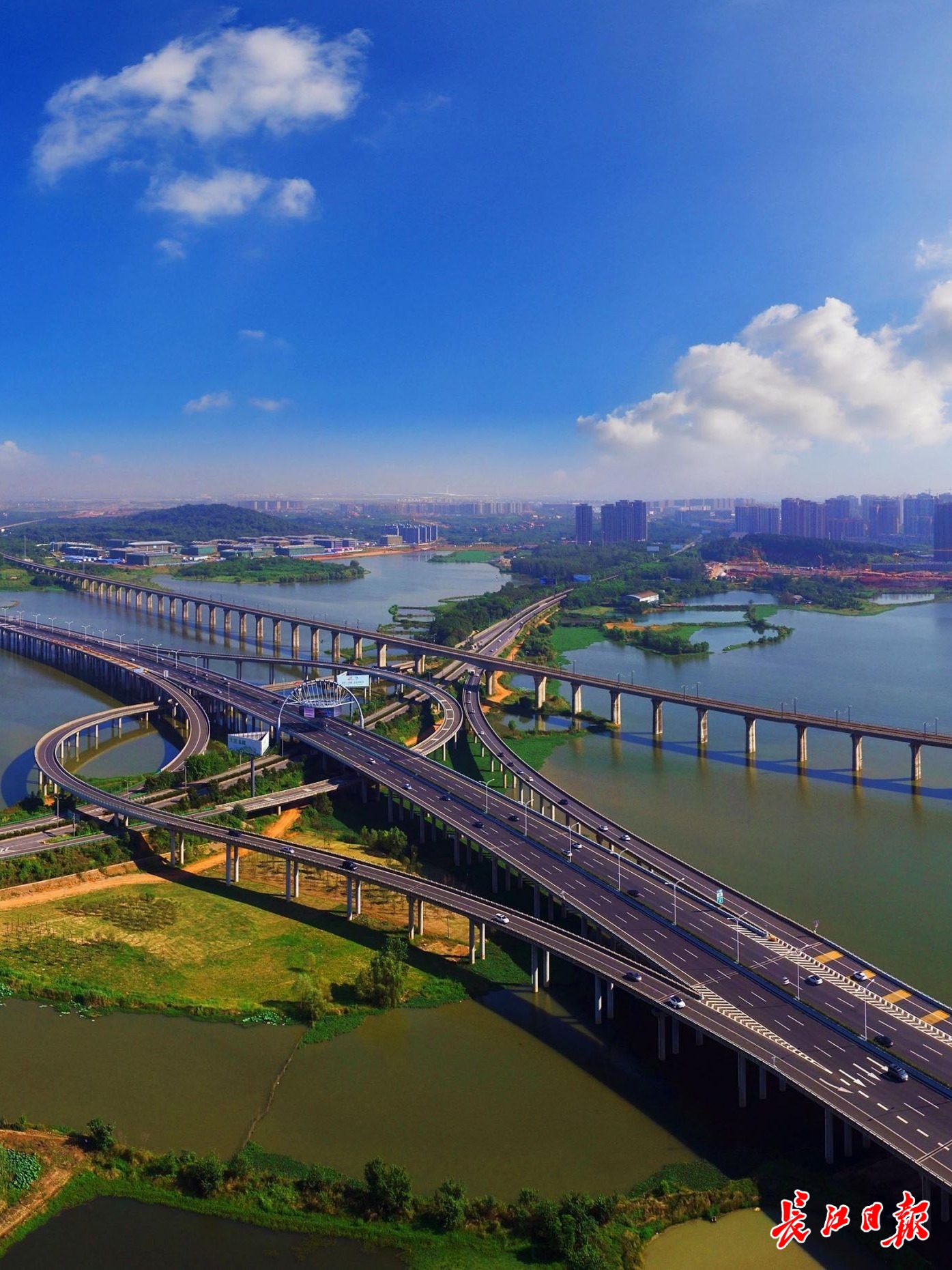 机场高速丰荷山立交,两条通往机场的高速路与城际铁路交汇。长江日报记者李永刚 摄