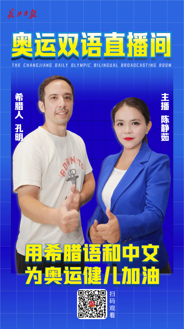 长江日报7月26日讯 7月26日20时,在长江日报《奥运双语直播间》,来自希腊的武汉小米产品经理孔明与长江日报主播一同用双语畅聊奥运赛事,用希腊语为奥运健儿加油。