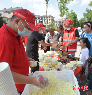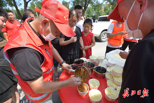 武汉曾麻子热干面在河南卫辉市为当地受灾群众和救援人员提供热干面和凉面。 长江日报特派记者詹松 摄