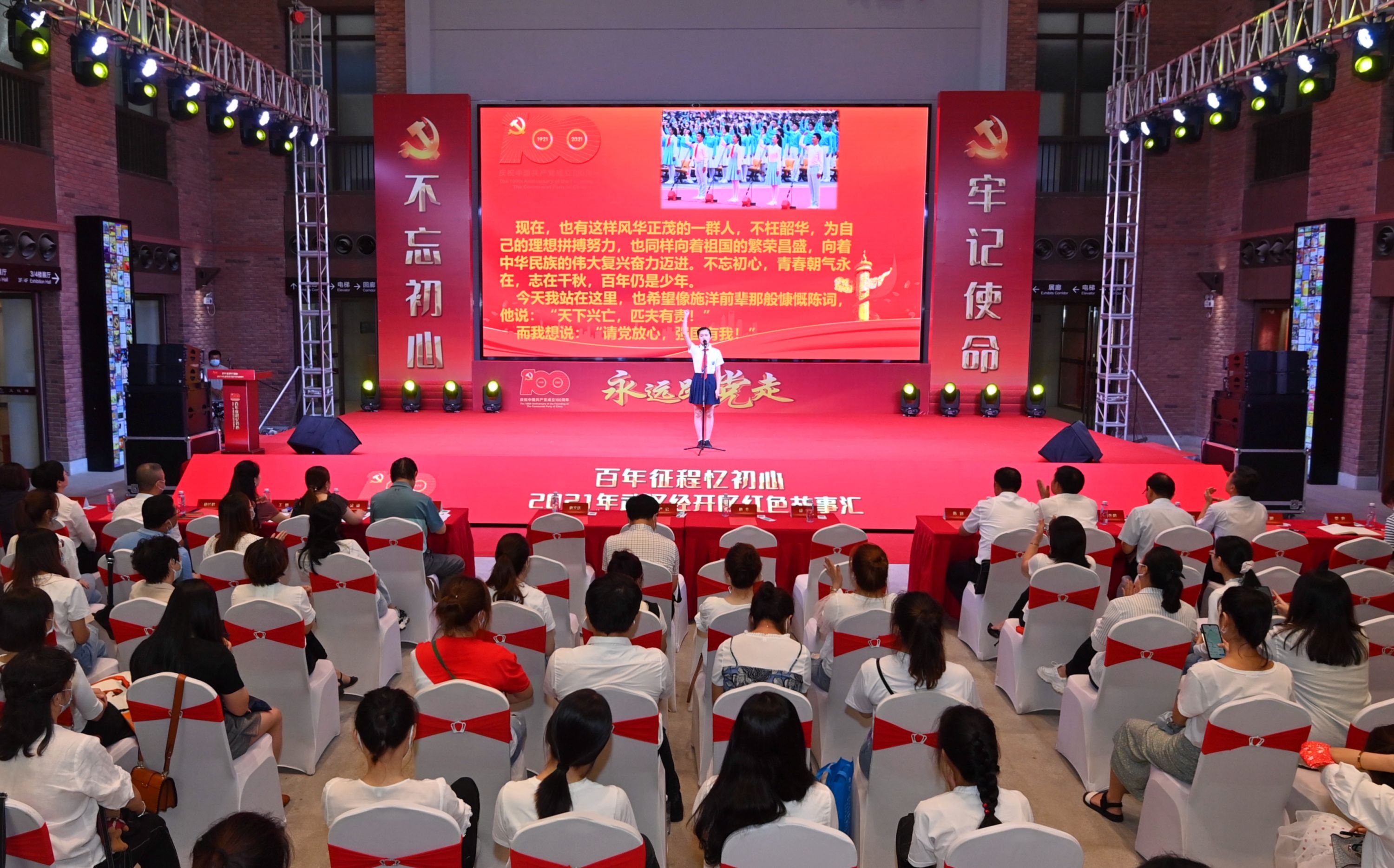 长江日报7月28日讯 7月28日,“百年征程忆初心”武汉经开区红色故事汇决赛活动在武汉经开区新文化馆举行。来自该区的13位优秀青少年和工人、教师、医护人员、社区工作者代表,讲述中国共产党成立以来各个时期的红色故事,传承红色基因,感悟建党精神,为武汉经开区二次创业凝聚力量,提供精神动力。