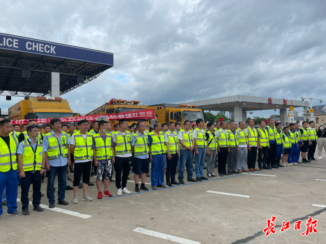 在迎接首批救援队回家的道路现场,长江日报记者看见每位排水队员皮肤都被晒得又黑又干,不少队员的肩膀与手臂颜色形成了鲜明的“黑白”对比。