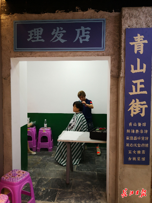 长江日报记者看到,在青山正街旧景复原区域有理发店、电器修理铺等3个房间,其中理发店还真有志愿者在给社区居民免费理发。街道党工委负责人说,设计建设的时候就专门考虑了景观展示与实际功能相结合,既能让居民感受乡愁,也能作为志愿服务场地实际发挥作用。