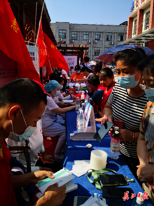 青山镇街道新时代文明实践所门前,好市民志愿服务集市热闹开场。 长江日报记者吴昊 摄