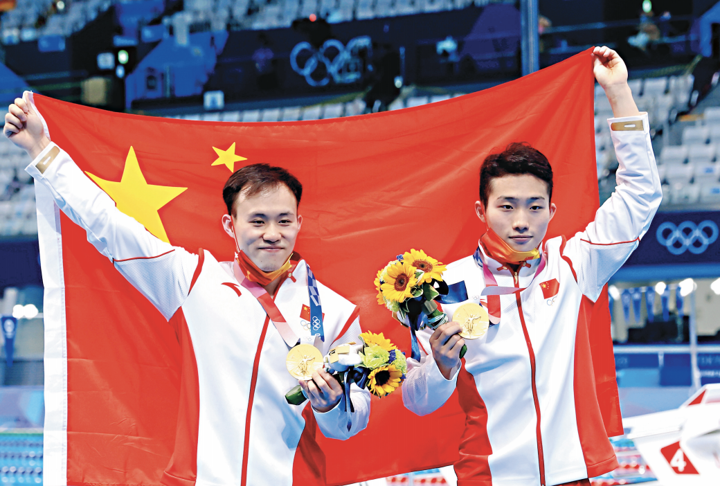 Wang Zongyuan and his partner Xie Siyi withstood the challenge from a US duo to win the men's synchronised 3m springboard gold on July 28. This is China's 11th gold medal, and the first gold medal won by Hubei athletes in the Tokyo Olympics. Wang, 19, is from Xiangyang, Hubei province. This is his first time to participate in the Olympic Games. Previously, he had only participated in one world competition, the 2019 FINA World Championships, and made a perfect debut by grabbing the men's 1m springboard title.