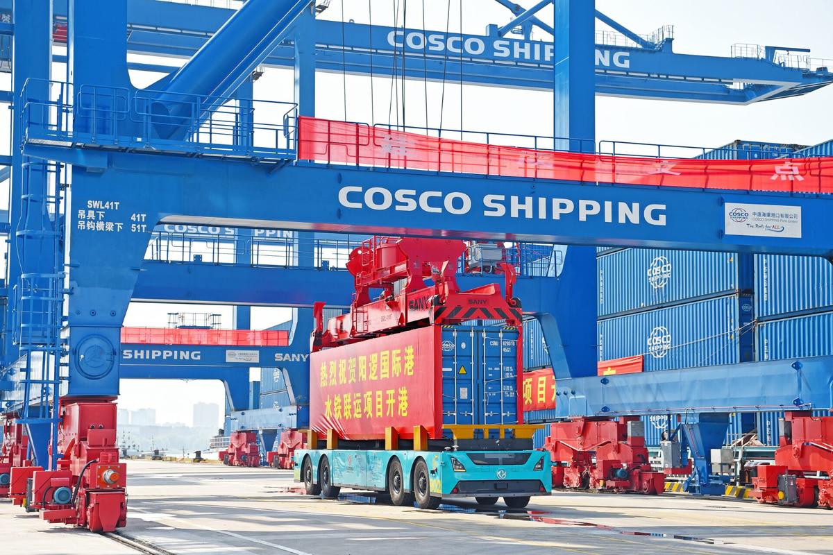 阳逻国际港集装箱水铁联运项目开港通车