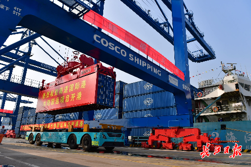 该项目由武汉中远海运港口码头有限公司建设运营,2020年8月1日开工,一年时间建成开港通车。