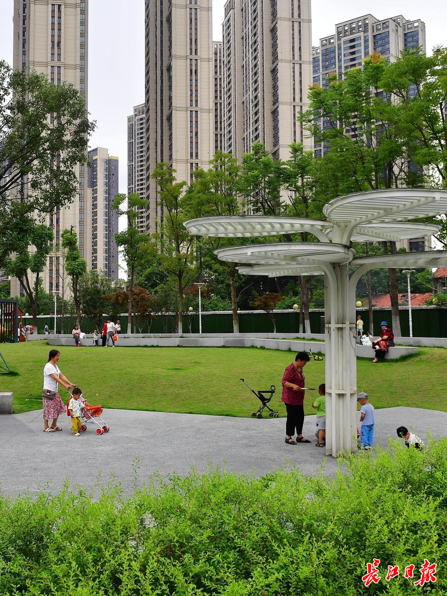 姑嫂树公园,居民带着孩子休闲、游玩。长江日报记者李永刚 摄