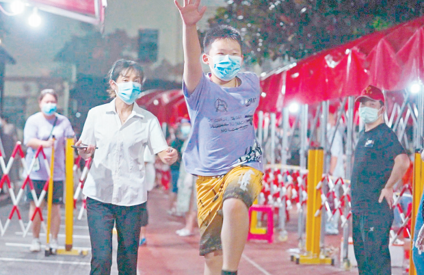 8月3日晚,彭刘杨路社区组织居民开展核酸检测。12岁的尹梓壡做完检测后,高兴得一路蹦跳起来。