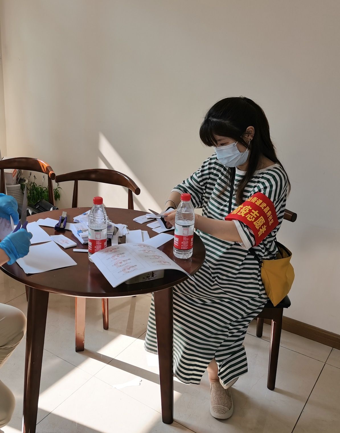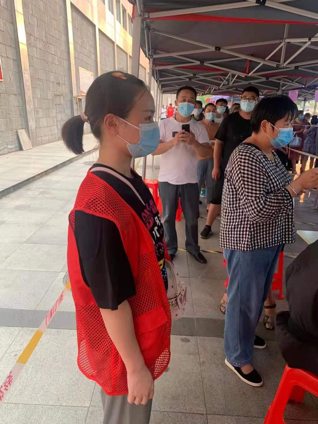 一直保留着的洪山区洪山街道武昌府下沉志愿者群里,社区书记发出急缺核酸检测志愿者的需求,她马上报了名。这位在疫情期间下沉了整整2个月的“熟练工种”从8月3日中午布置场地开始,一直忙碌到4日清晨。还不到90斤的她,工作起来毫不含糊,她总是说:武汉吖,义不容辞保卫武汉!