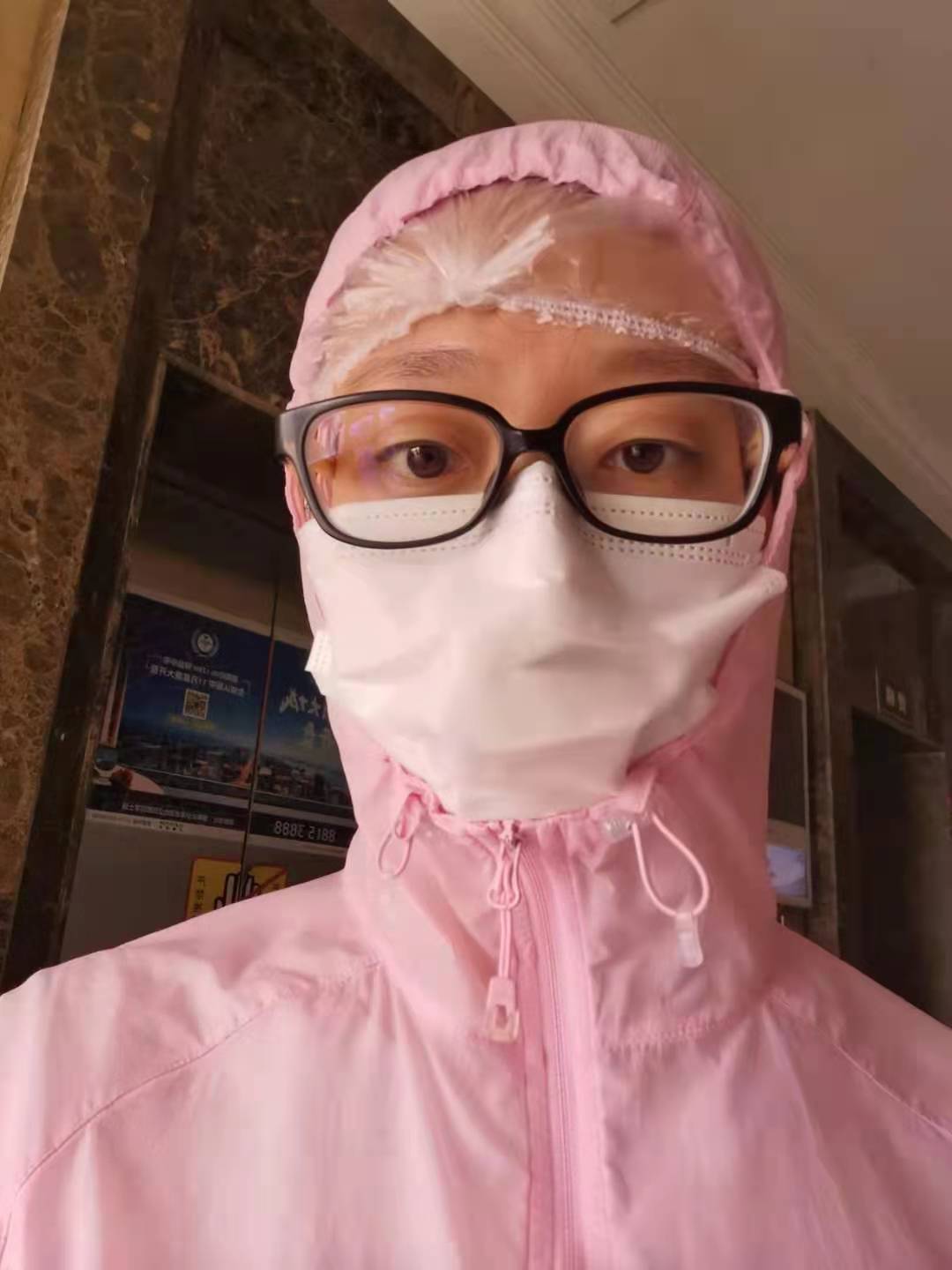 因放暑假回到湖南长沙探亲的周川老师,自己所住的小区被认定为中风险区,小区开始实行封控管理,她们被隔离在家。开始的几天,她趁着下楼做核酸检测的机会,给志愿者们送冰袋防暑降温,到了被隔离的第4天,热心肠的她再也坐不住了,加入了志愿者队伍,进行消杀工作。