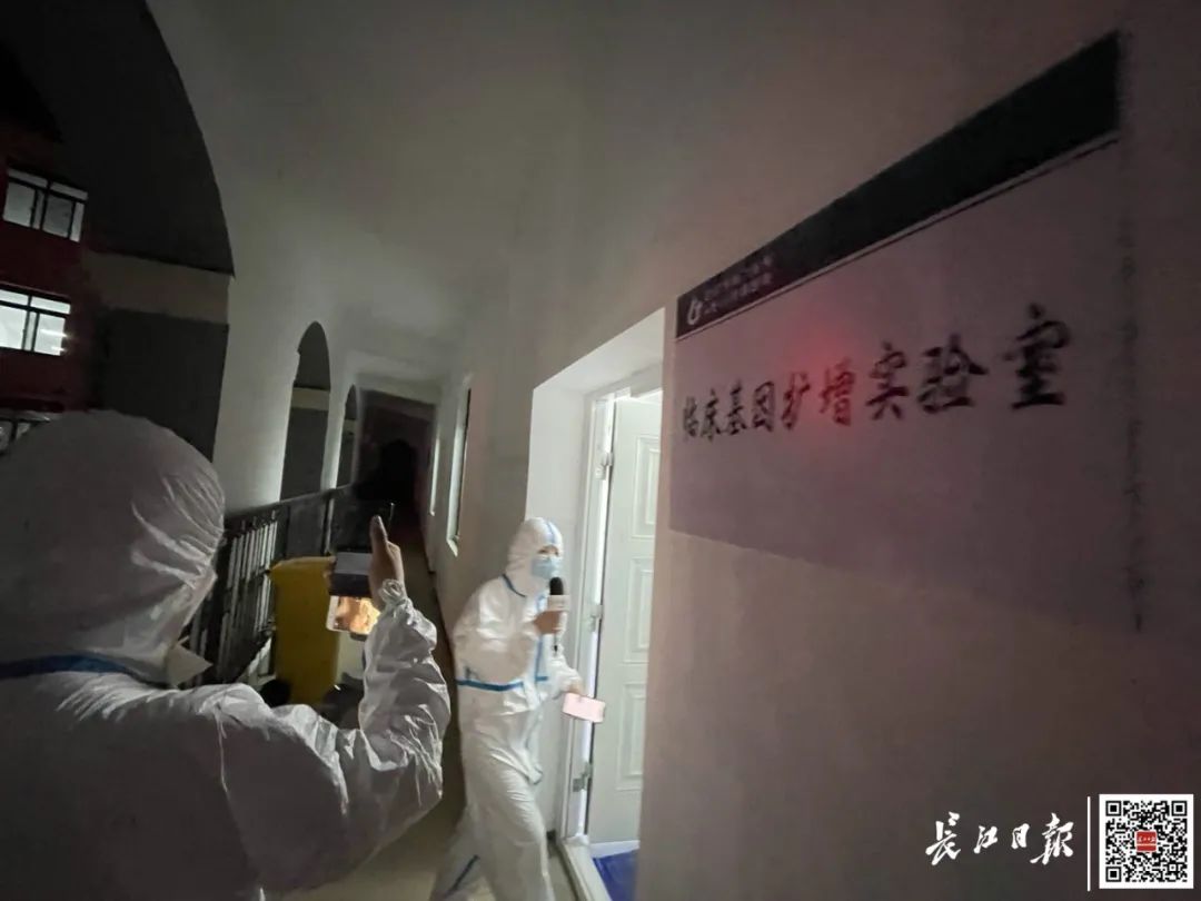 在张洪波的指导下,长江日报记者做好消毒、防护工作,跟着他进入了实验室。