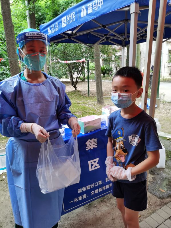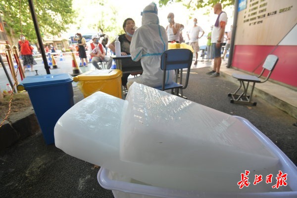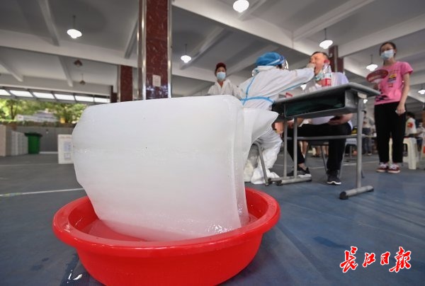 7岁的小刘同学为护士小姐姐送来冰袋。通讯员马遥遥 摄