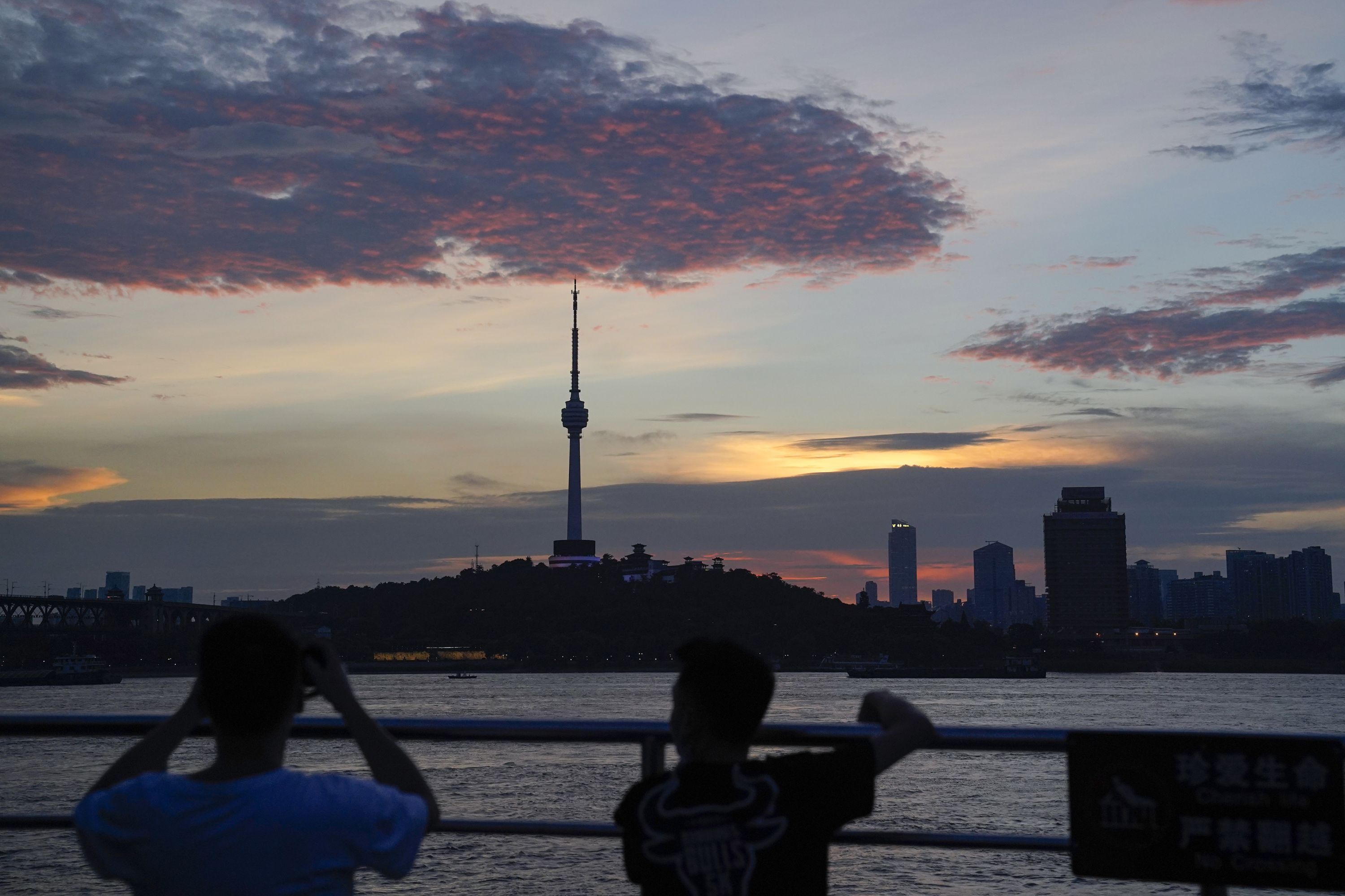 市民在江边欣赏美丽的晚霞。长江日报记者彭年 摄