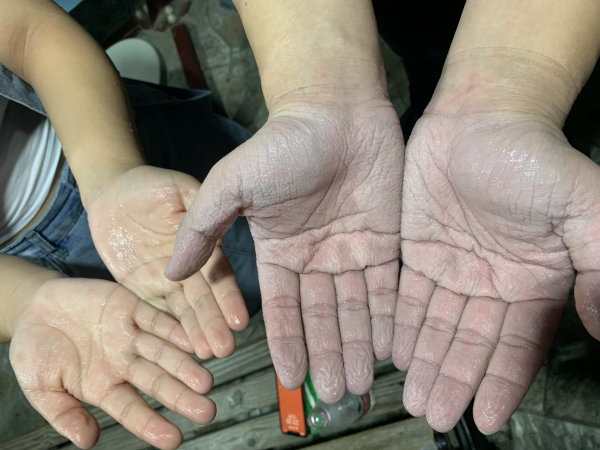 医护人员脱下防护服后的手。 通讯员舒麟 摄