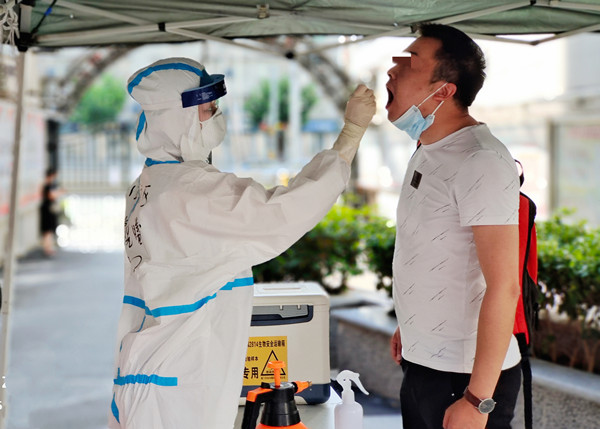 关晓曦5日在袁家社区参与核酸采集工作。 通讯员供图
