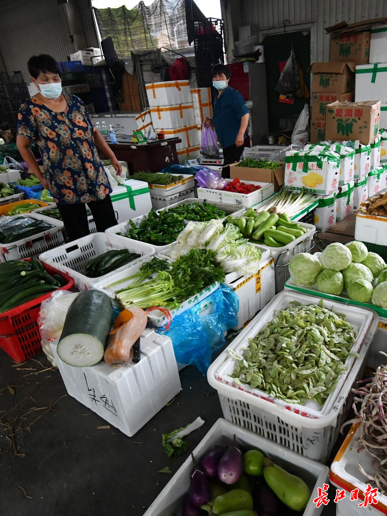8日傍晚,东西湖革新大道红金堂蔬菜批发配送中心,各种当季蔬菜瓜果、粮油、禽蛋类,应有尽有,货源充足。长江日报记者喻志勇 摄