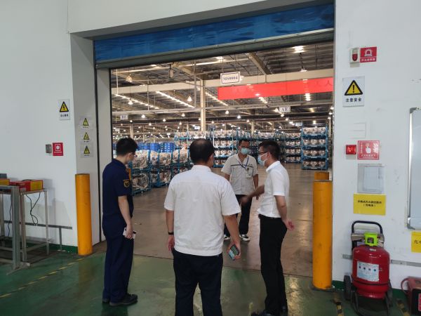 武汉经济技术开发区(汉南区)商务局工作人员,来到东风本田储运公司检查风险物品防控工作。通讯员王建广摄