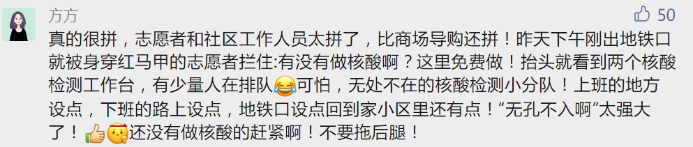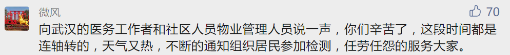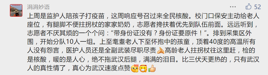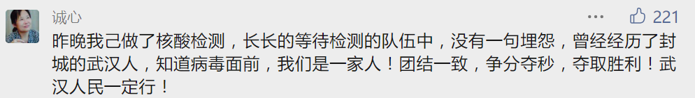 长江日报8月9日讯 从通报7名外来务工人员核酸检测阳性,到武汉全市基本完成全员核酸检测,这8天,武汉全民迎战德尔塔!8x24小时背后,武汉人的心声是什么?我们从长江日报官方微信选取了一些留言,听听他们怎么说。