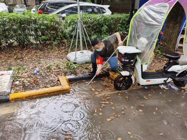 宝安花园因大雨积水,武汉地铁下沉党员协助清污排涝。武汉地铁集团供图