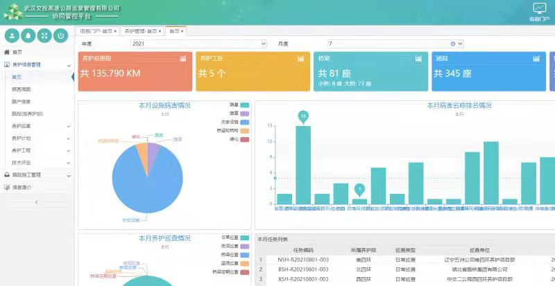 截至目前,武汉交投集团高速公路运营公司管养里程达135.79km,负责武汉四环线东段、南段、西段、北段及武深高速武汉段的运营管理工作。自2020年开始探索“互联网+智慧高速管养一体化平台”建设工作以来,结合“精细管理、精准服务”的理念,基于高速公路智能化大数据管理平台,逐步实现了对养护及机电管理全过程、全要素的信息化、智能化、主动式、预防性管理。
