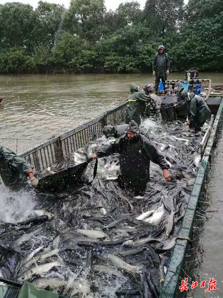 今年春季以来,全国各地市场淡水鱼价格普遍上涨。目前武汉市处于保供的重要时间节点,为了让爱吃活鱼的武汉市民吃到价格相对便宜的淡水鱼,武汉市农业农村局积极协调,武汉农业集团发挥国企担当,起捕20万斤鲜鱼平价投放市场。记者在现场看到,武汉农业集团所属水产公司克服近日暴雨天气的不利因素,组织船只和人员将起捕的鲜鱼赶网到湖边,带有称量设备的吊车把一袋袋不同鱼种的鱼吊到货车上,装满发车,以最快速度让鲜鱼从鱼塘到餐桌。