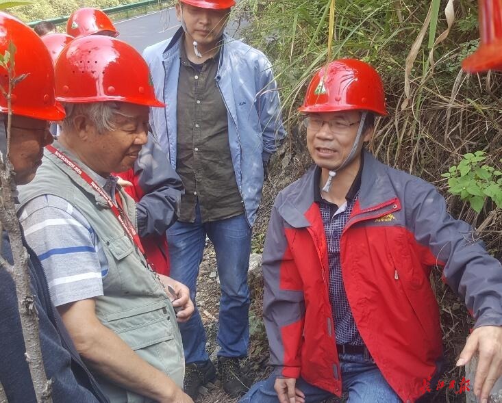通讯作者谢树成教授(左一)在神农架科考。记者杨佳峰 摄