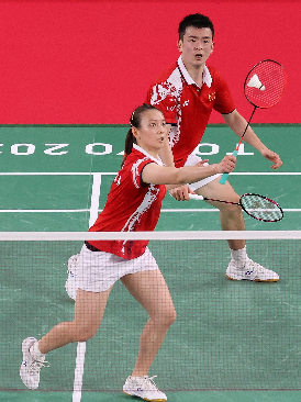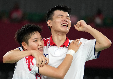7月30日,王懿律(右)/黄东萍庆祝夺冠 新华社