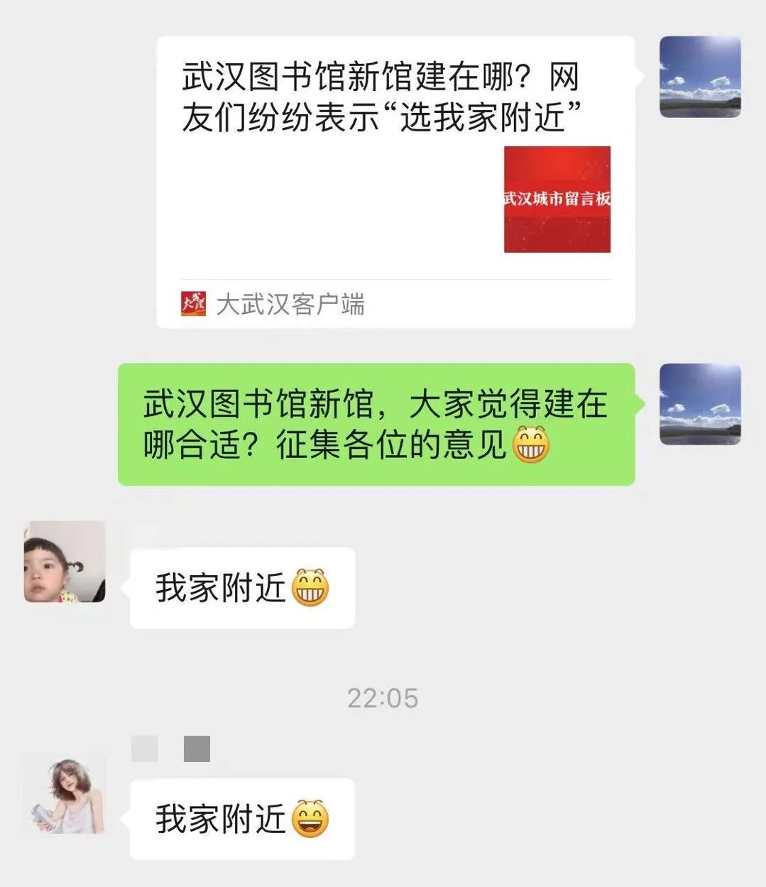 针对武汉城市留言板上网民们的热情建议,市文化和旅游局回复:武汉图书馆新馆建设目前已纳入全市文化和旅游“十四五”规划,正在积极寻求市级规划部门的支持,在全市范围内物色新馆选址。关于选址和设计的问题,该局还召开了新馆建设专家研讨会,对新馆建设相关问题进行了深入探讨,目前正在积极推动武汉图书馆新馆选址工作。该局将汇集市民对新馆的建议并提供给相关部门,以便在确定选址时综合考虑。