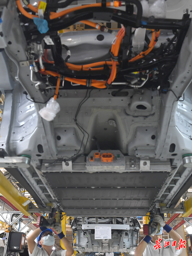 17日,位于武汉市江夏区的上汽通用汽车武汉分公司,南厂和北厂总装车间满负荷生产。长江日报记者周超 通讯员李畅 摄