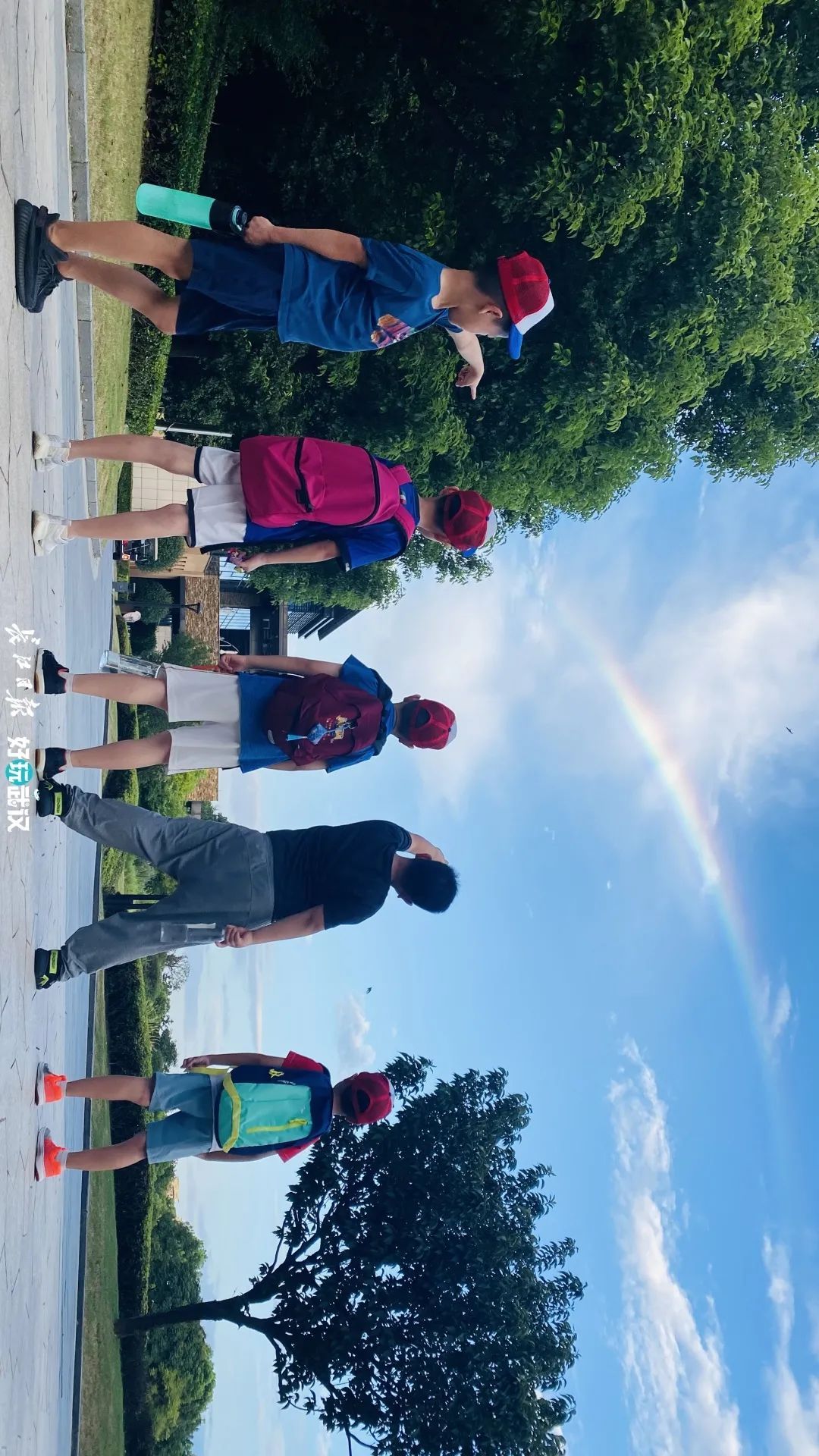 ■ 光谷驿山高尔夫球场,孩子们正在这里参加夏令营活动。雨后的傍晚,他们正走着回住处,“看,彩虹!”一个孩子惊喜地叫了起来,大家齐刷刷扭头去看。我赶紧抓拍下这一幕,记录下彩色的童年。