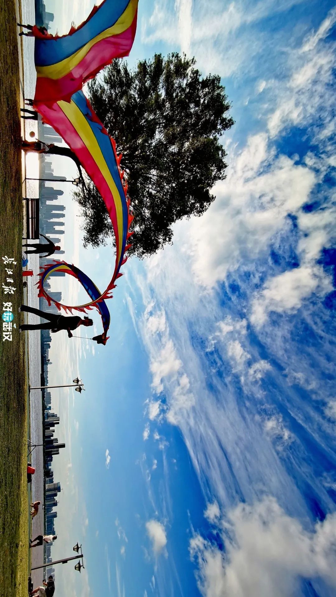 ■ 天气真好,我骑着自行车到武昌江滩看晚霞和日落,遇到一位舞彩龙的女子,她见我对着她拍照,舞得更起劲了,江风吹起彩龙的绸带,像一条真正的龙在舞蹈。对了,她背后就是那棵有名的“网红树”。