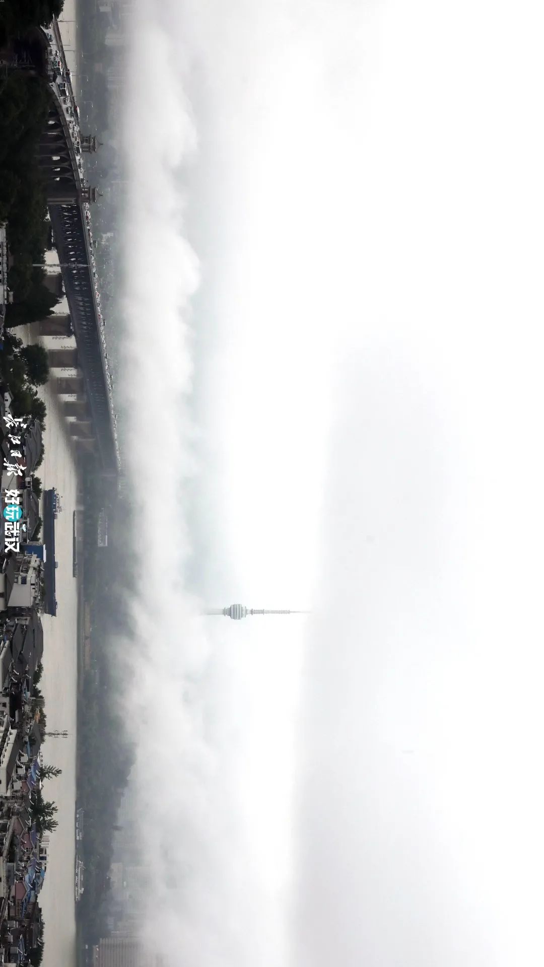■ 小雨中的武汉弥漫着雾气,龟山电视塔腰缠玉带,层层薄雾锁大桥,好一座云中之城。