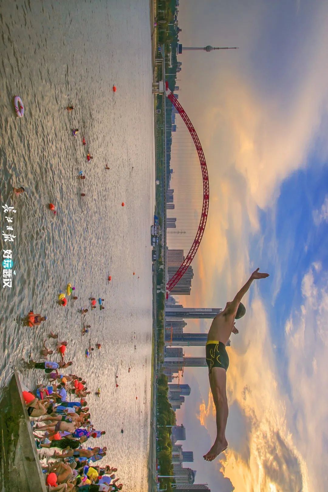 ■ 汉口集家嘴的长江边,傍晚时分集结了爱玩水的人们。一群五六十岁的男人,站在堤边的栏杆上玩跳水,一趟一趟不知疲倦。我提醒他们:“注意安全啊!”一位老哥哈哈笑着:“怕么事撒,我们都是在江边长大的伢,熟悉得很咧。”他一扭头,双手张开,一个猛子,跃入江水。